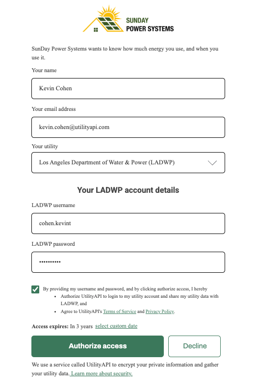 The redirect URL is the website where the utility account holder will be redirected after they complete the authorization form. By default, the utility account holder is not redirected and will remain on the authorization receipt page.