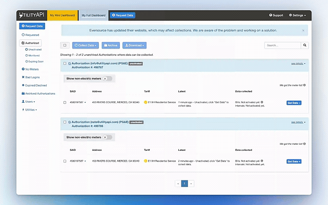 UtilityAPI retrieves the data from those meters and makes it available in your dashboard.